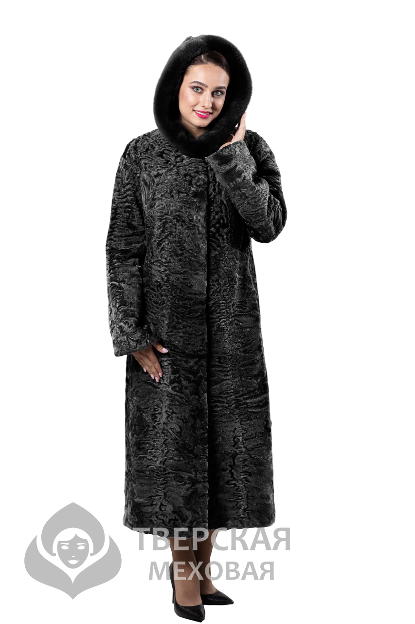 Шуба из каракуля "Римма" капюшон черный 110 цвета черный