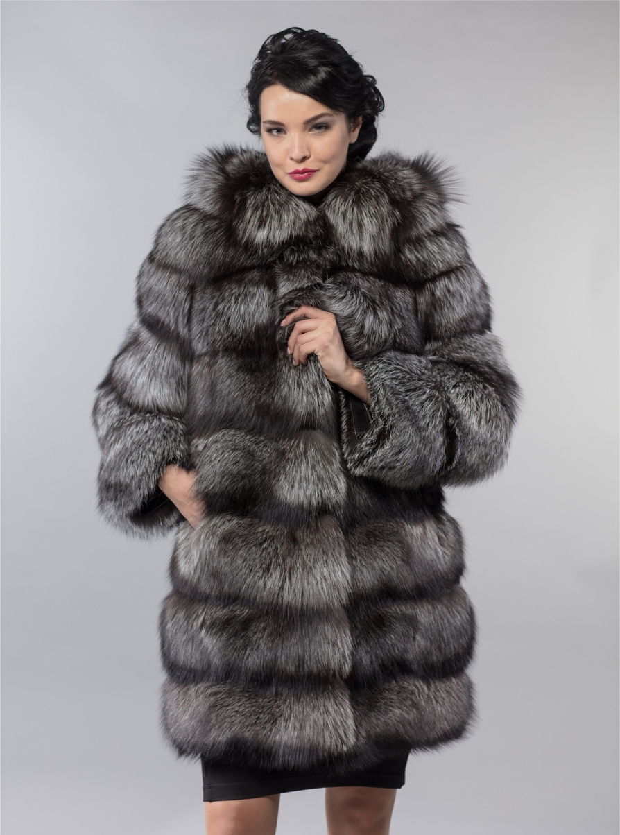 Шуба из меха серебристо - черной лисицы. Длинный, игристый, блестящий мех лисы очаровывает! Изделие имеет прямой силуэт и выполнено в модном поперечном расположении шкур с элементами росшива: шкурки лисы чередуются с замшей. Воротник — апаш. Рукав полной длины. Шуба легко трансформируется в короткое изделие с укороченными рукавами. Рукав 7/8 можно носить под длинную перчатку, а в короткой куртке из чернобурой лисицы вам будет комфортно за рулем автомобиля. Карманы и подол изделия отделаны замшей. Это защитит шубу от лишнего истирания. Шуба из меха с длинным ворсом подходит для решительных и стремящихся к достижению людей. Придает уверенности!Характеристики