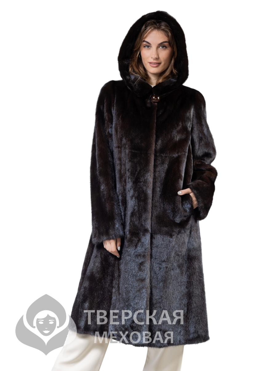 Норковая шуба «Белла» капюшон махагон 110 цвета махагон