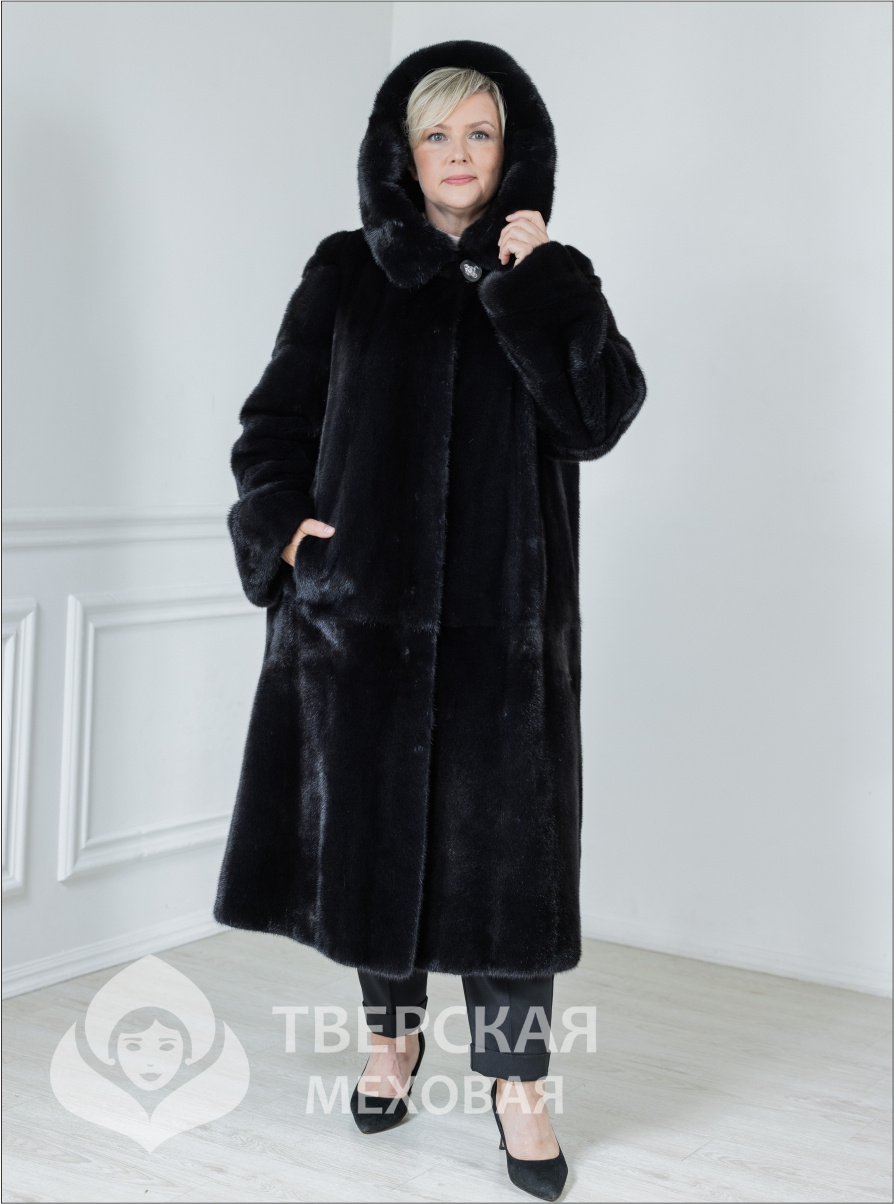 Норковая шуба «Графиня» капюшон графит 115 цвета графит